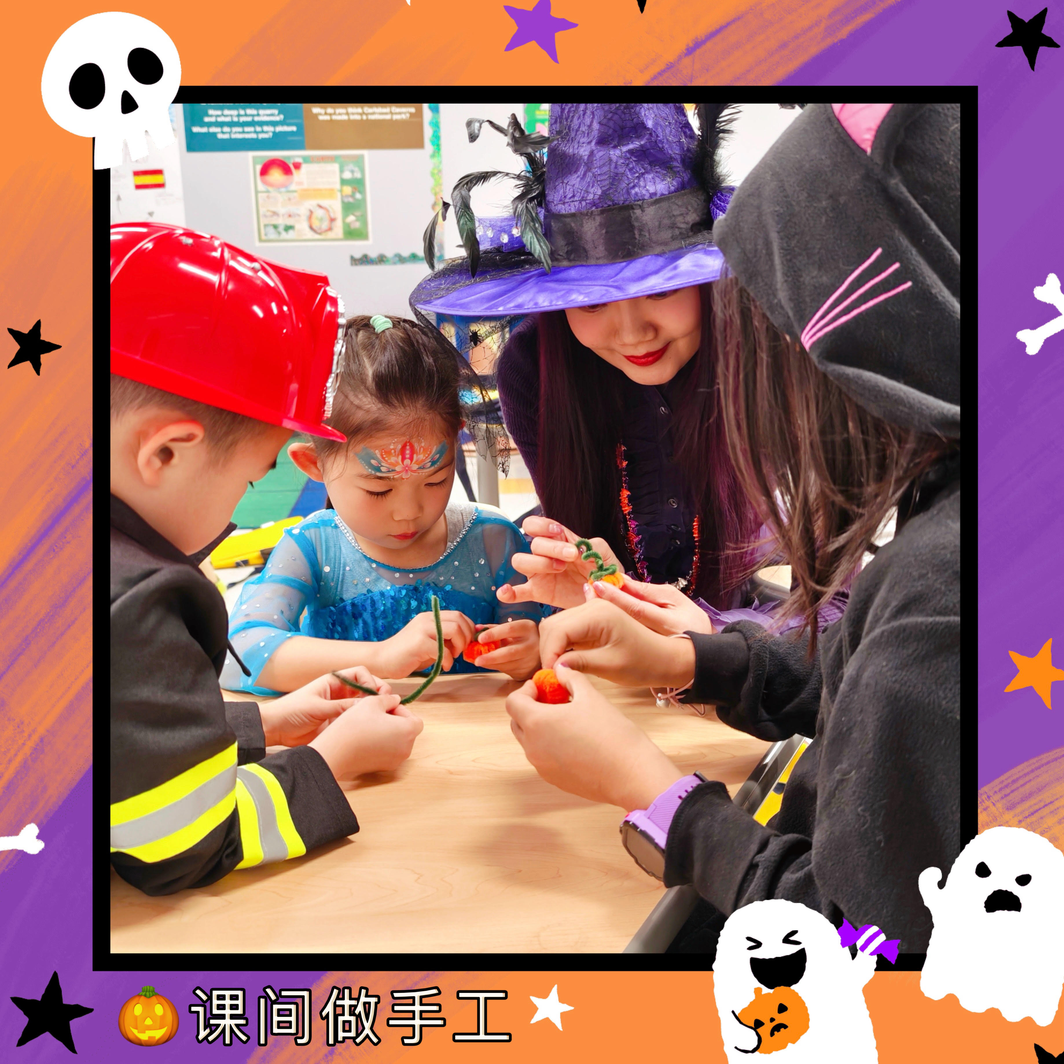 In the classroom, teachers creatively incorporated Halloween themes into their lessons. Some classes guided students to make mini pumpkin crafts, others explored the art of writing fun Oracle Bone characters, and some designed Halloween-themed trivia games... The children expanded their knowledge through joyful activities, naturally blending language learning with cultural experience, and filling the classroom with the excitement of discovery.