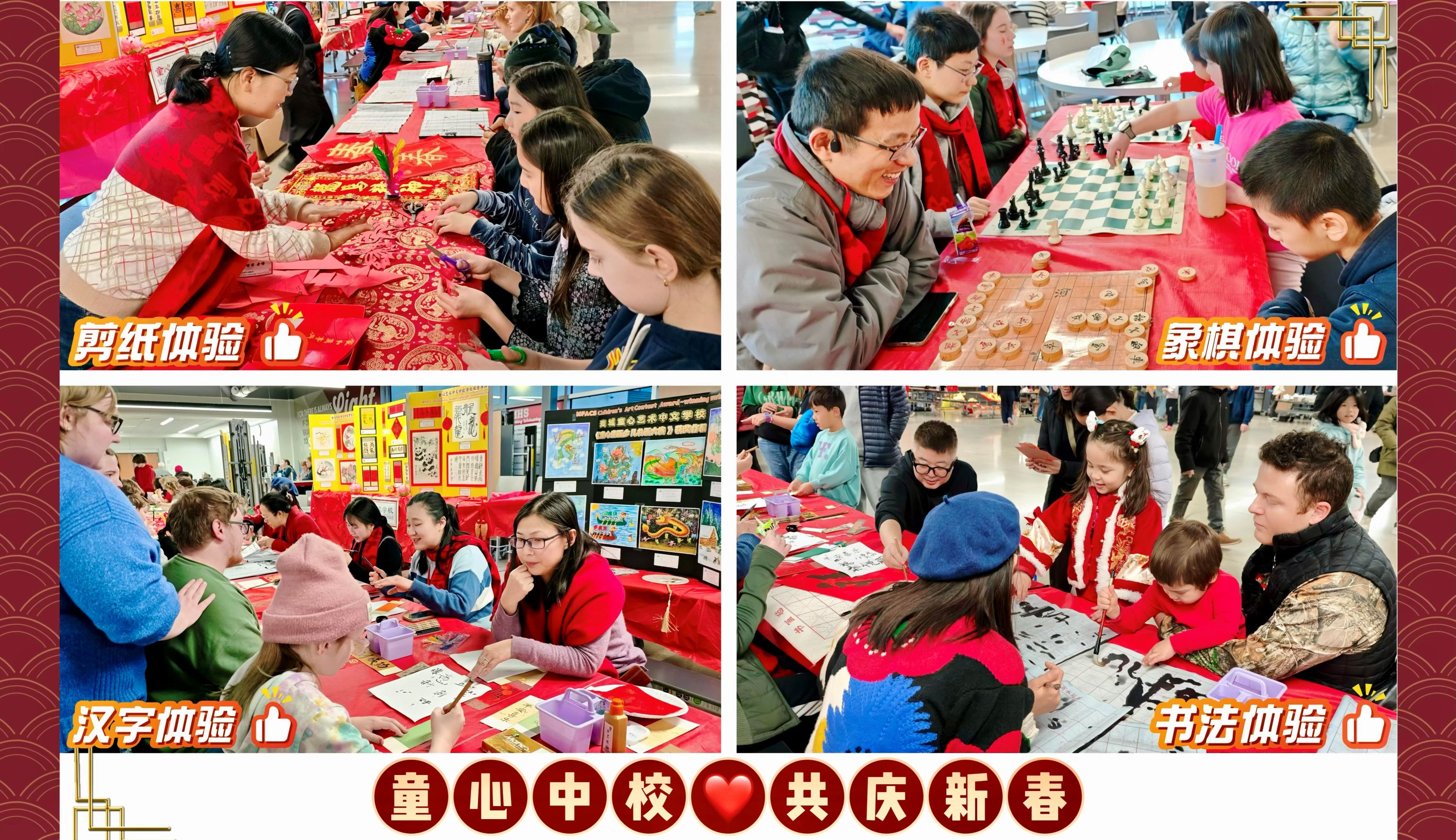 今年春节童心展台的成功,比往年更加盛况空前。这离不开童心老师和助教们的辛勤付出——从展台布置、文化讲解,到书法、绘画、剪纸、象棋等互动体验环节,充分展现了童心教学团队的专业与用心。感谢每一位老师的热情与奉献,也感谢家长们一直以来的支持与信任,让我们携手为孩子们创造更加美好的成长平台!