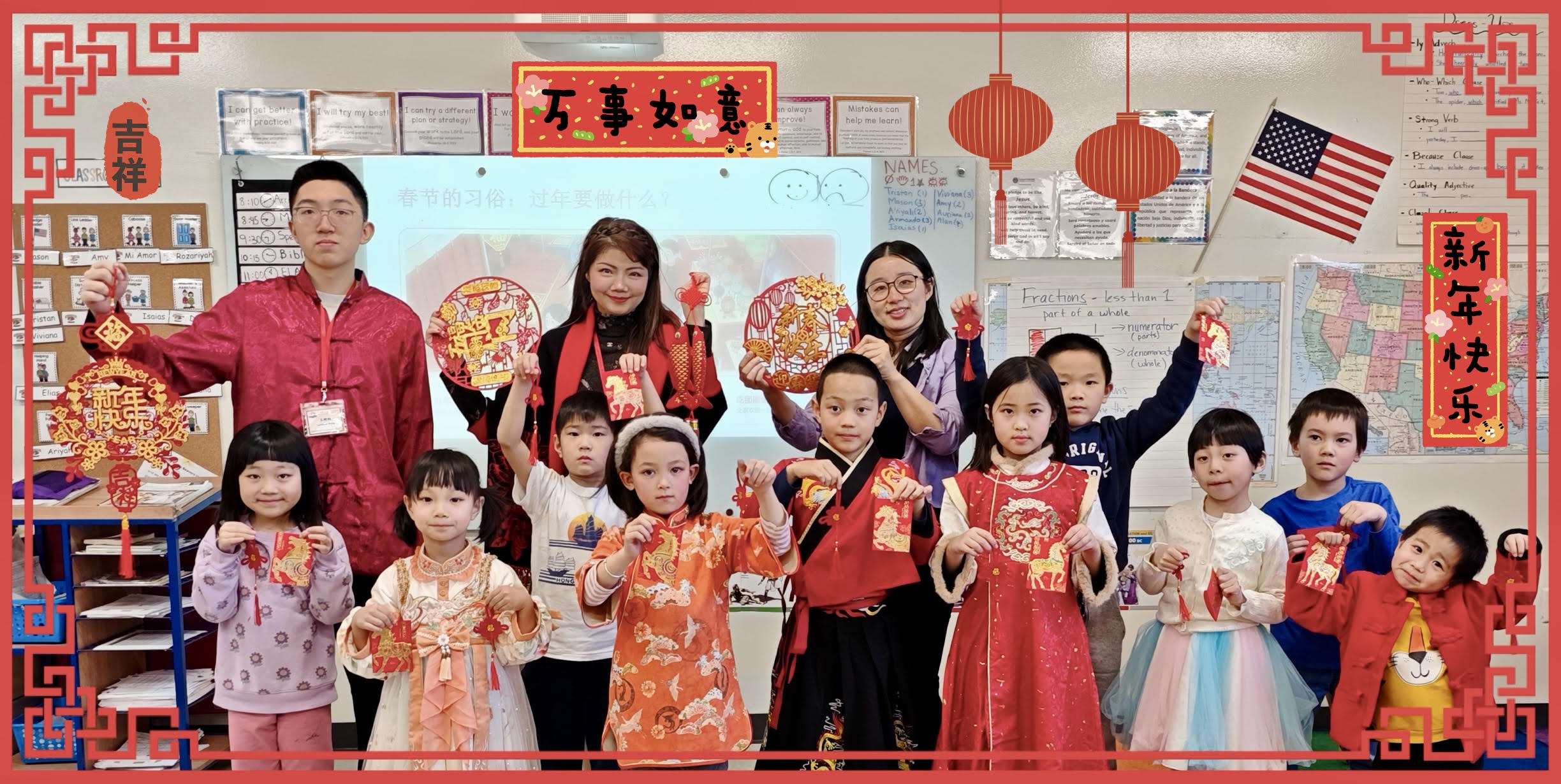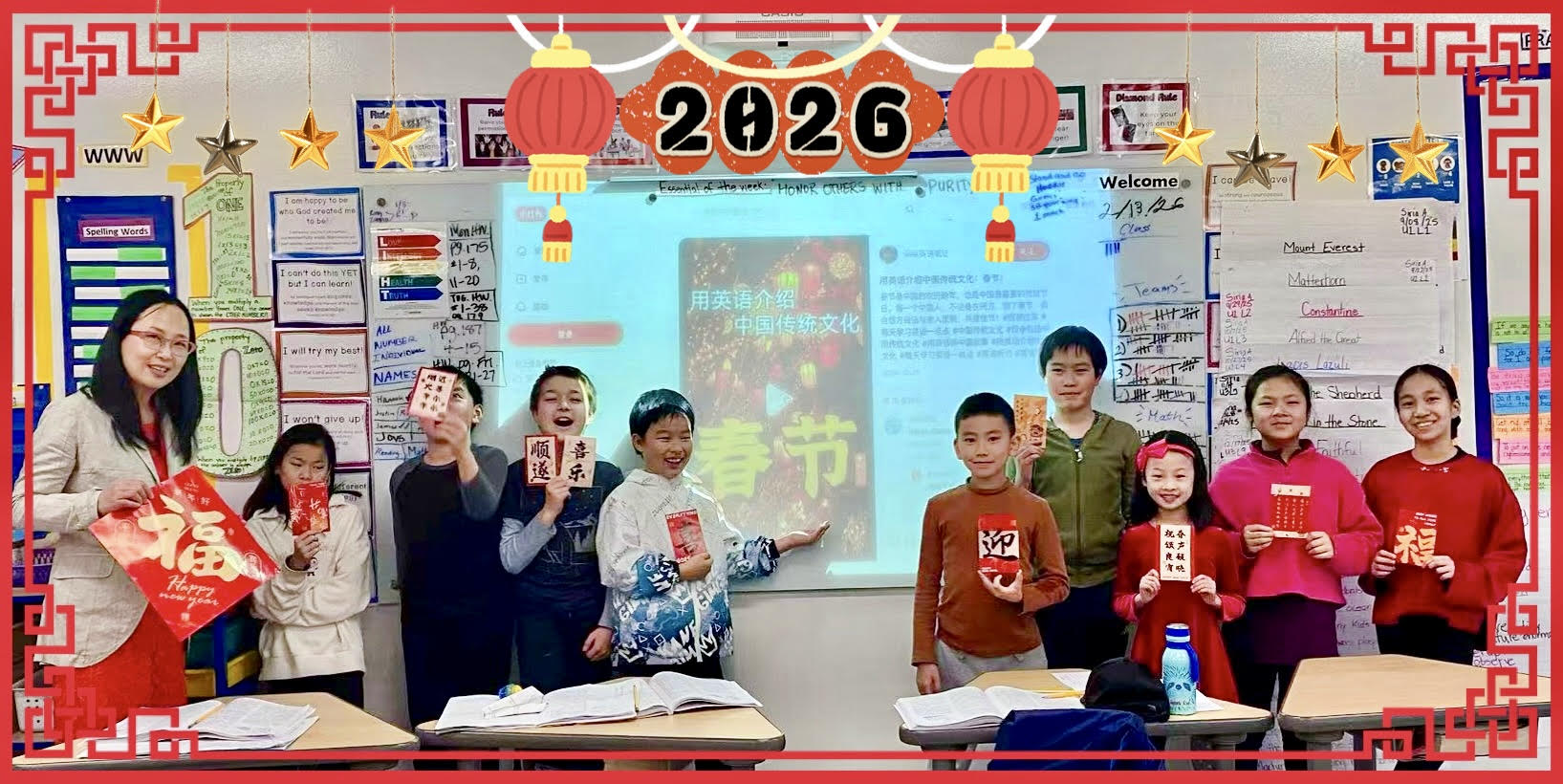 2026年2月15日,马年春节前夕,童心中校各班课堂依旧温馨有序,而年味已悄然弥漫。我校在常规课程教学之外,各班还融入了丰富多彩的春节主题活动。孩子们身着喜庆的节日唐装,课堂氛围格外热烈;中文老师们精心设计了“欢庆马年”主题课程,通过图文并茂的课件、生动有趣的讲解与互动小游戏,引导同学们了解中国春节的传统文化,在轻松愉快的氛围中共同感受浓浓年味。